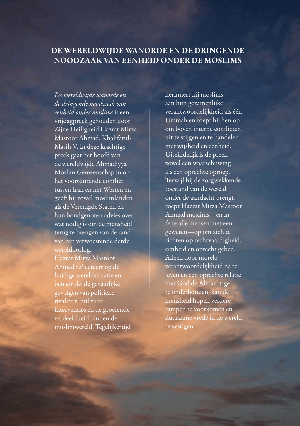 DE WERELDWIJDE WANORDE EN DE DRINGENDE NOODZAAK VAN EENHEID ONDER DE MOSLIMS